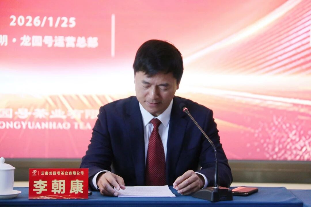 中国农业国际合作促进会茶产业分会副会长、中国茶叶流通协会常务理事、中国国际茶文化研究会常务理事、云南省茶叶流通协会副会长、云南省普洱茶协会副会长、西双版纳州茶业协会副会长、龙园茶业副董事长李朝康副教授首先代表龙园茶业董事长李正行先生和公司全体员工,对龙园家人和合作伙伴的到来表示热烈的欢迎!对大家并通过大家向全国龙园号经销商表示亲切的问候和新春的良好祝愿!对各级领导、各界朋友和广大消费者对龙园号的关心、关注和厚爱表示衷心的感谢!