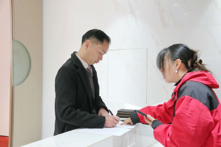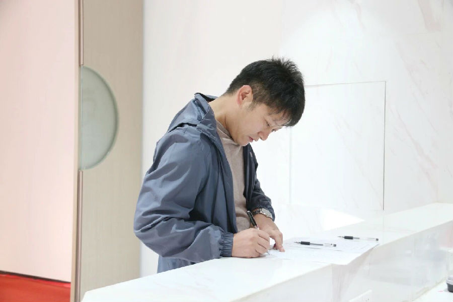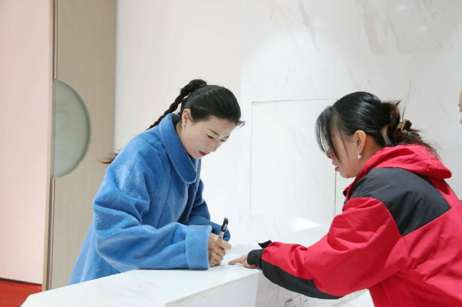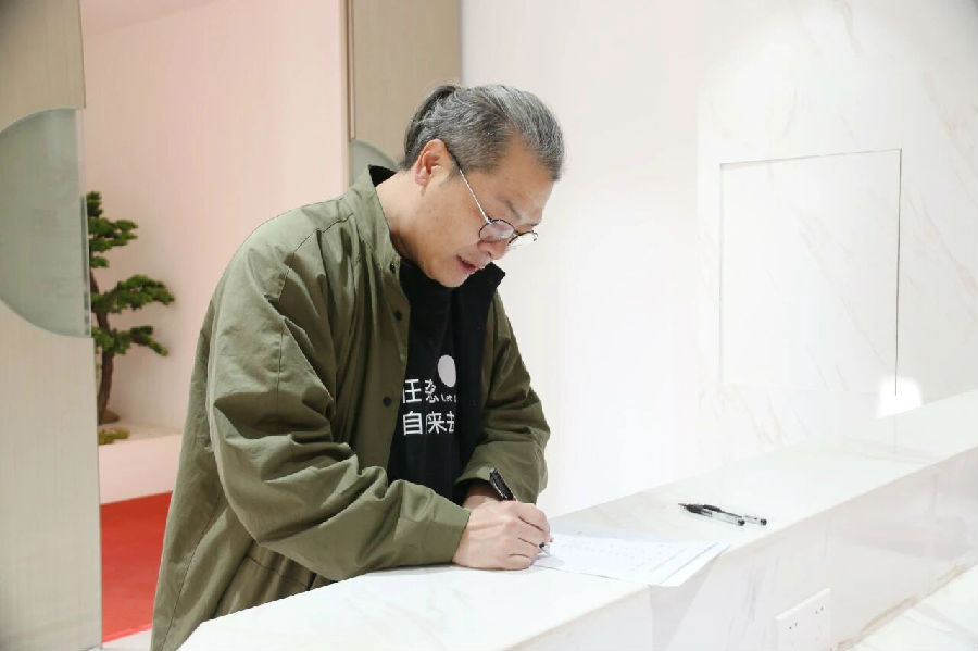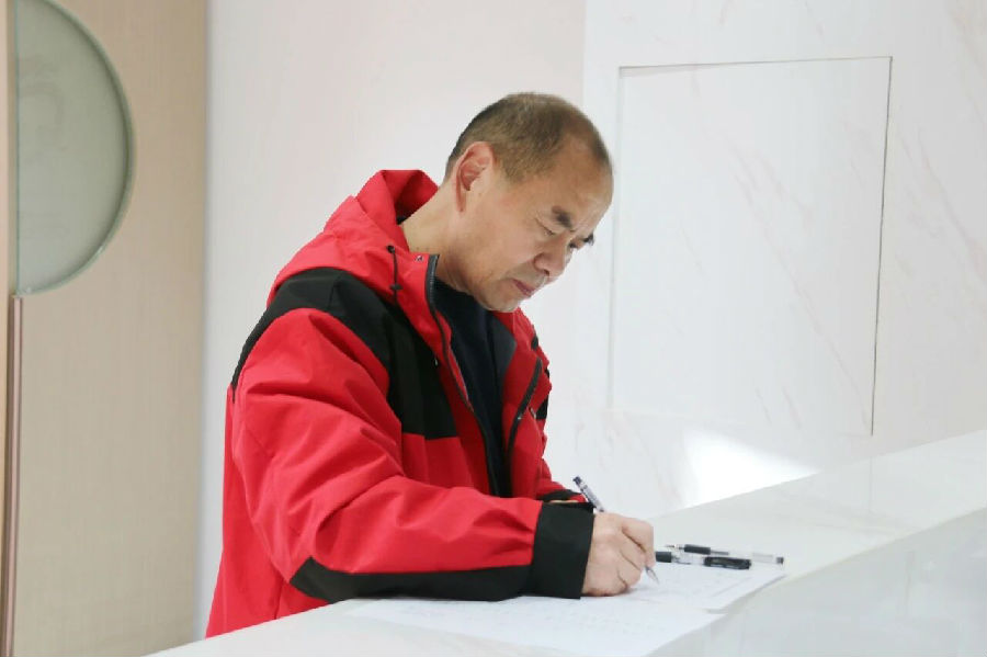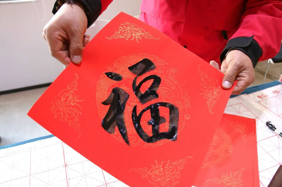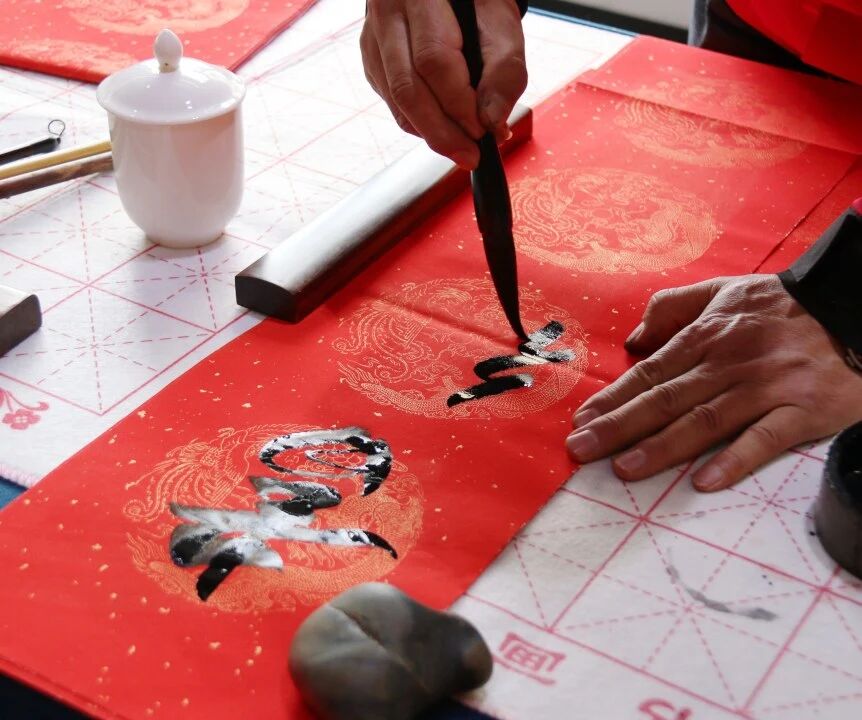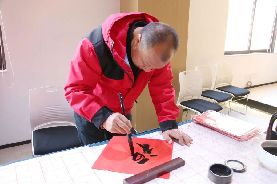 龙园号经销商游兵,现场为大家书写辞旧迎新对联。