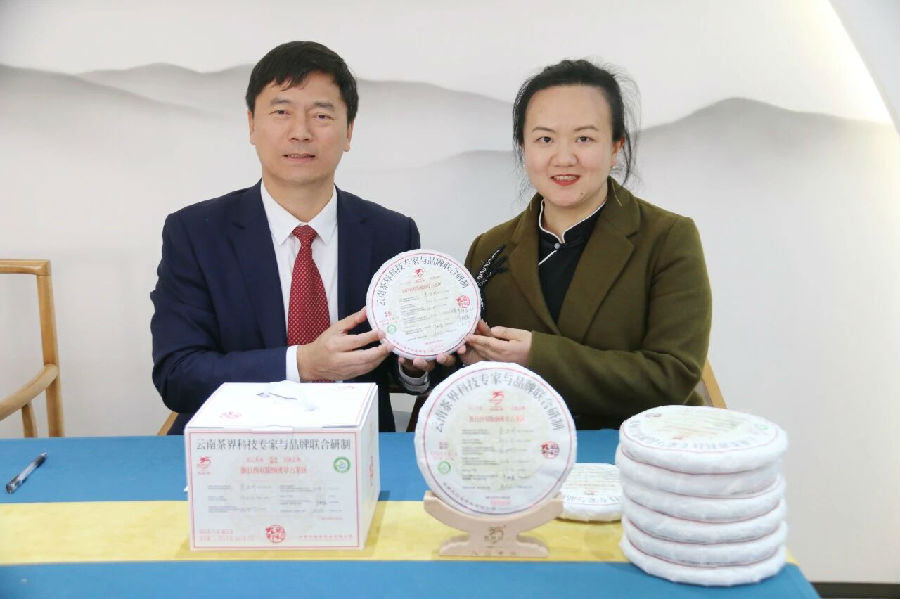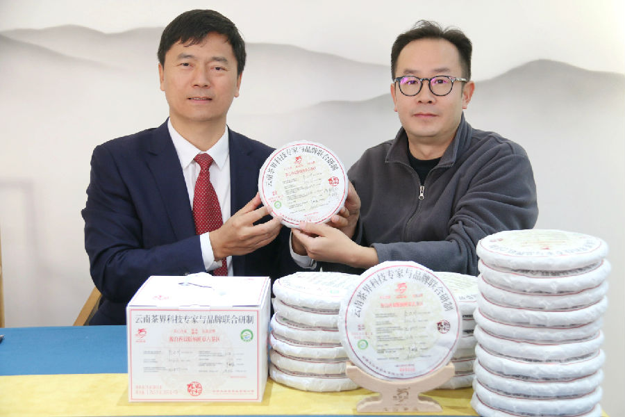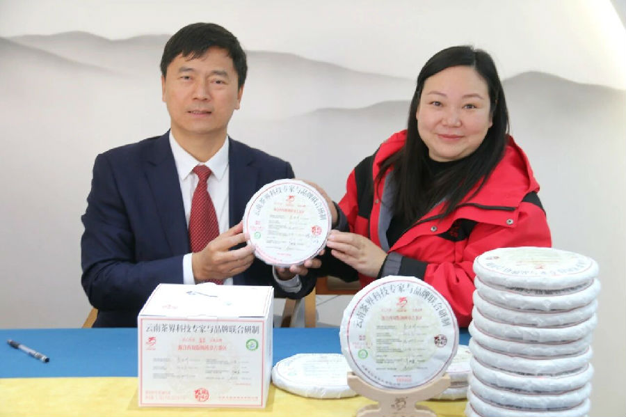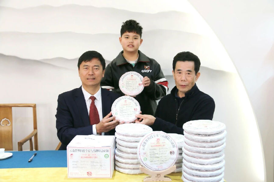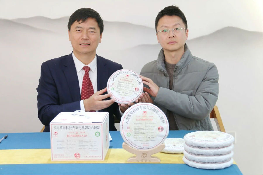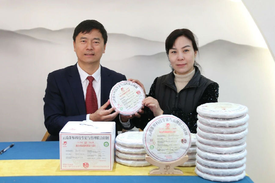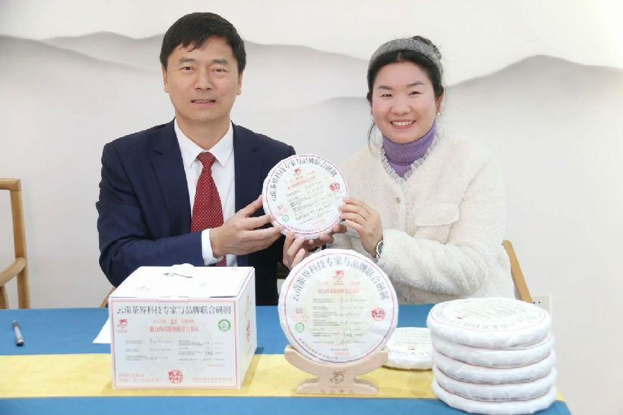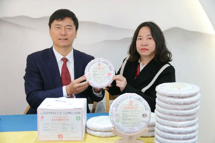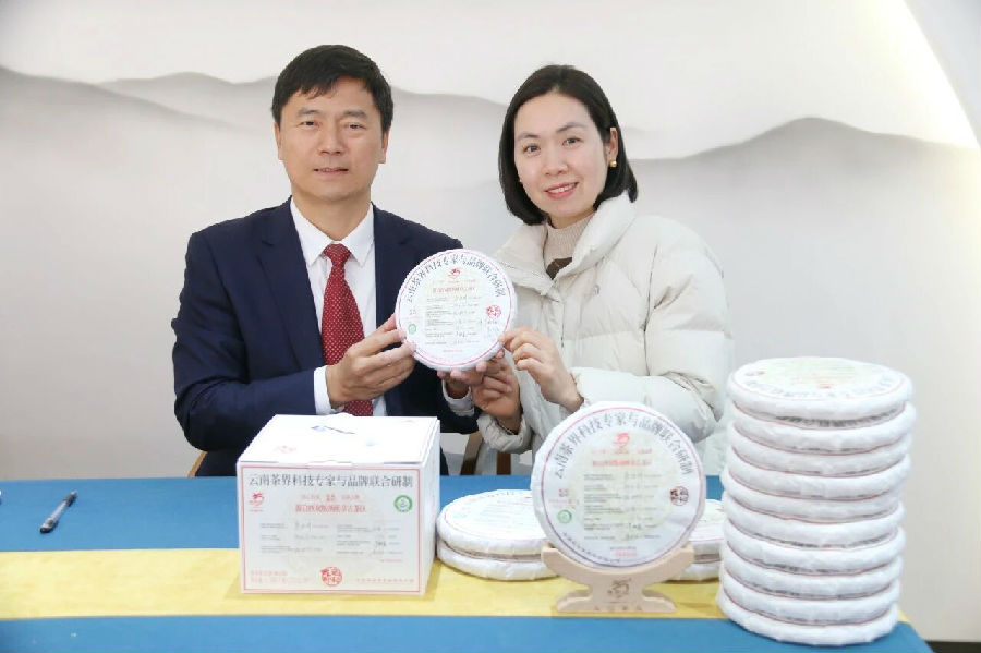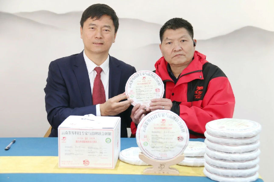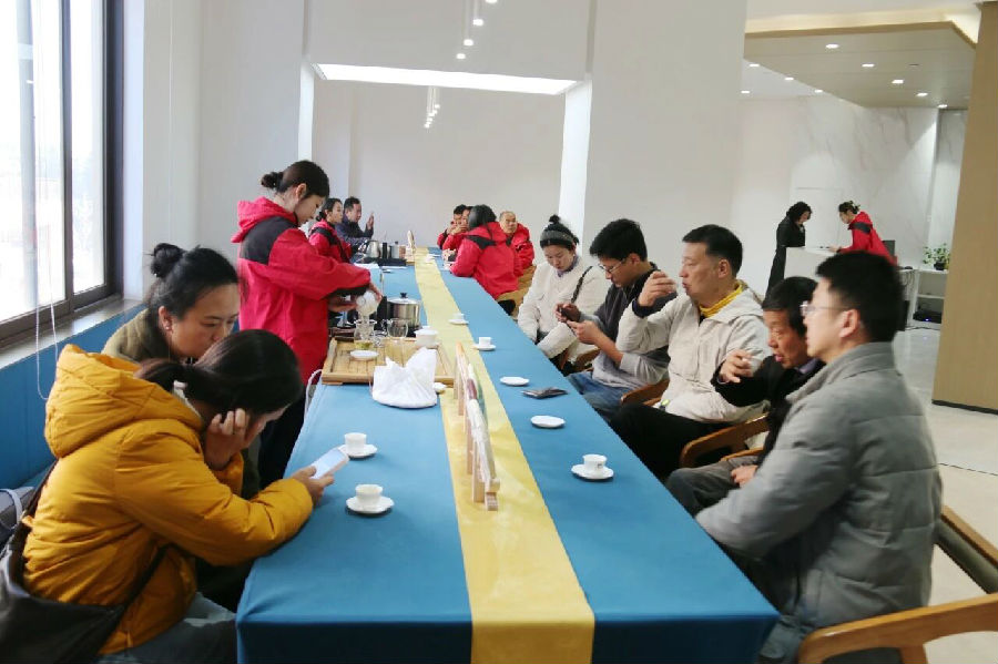 会议结束后,与会人员一同品鉴了2025年“龙园印记”专家饼、2025年“熊猫班章”熟饼等产品,大家高度赞誉并积极订购这些特色优势产品。