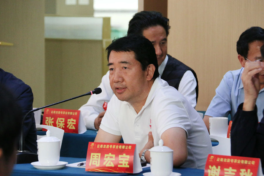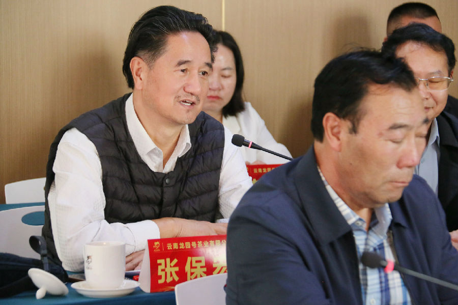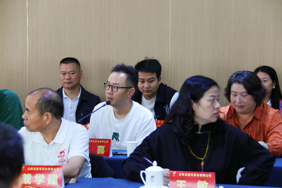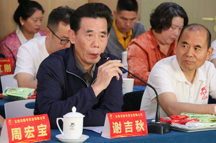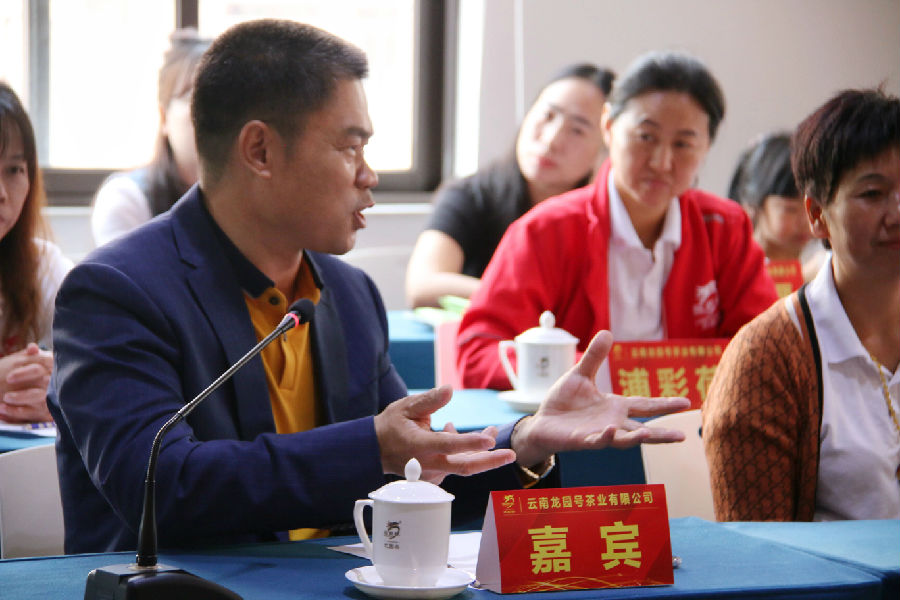 茶话会由中国农业国际合作促进会茶产业分会副会长、中国茶叶流通协会常务理事、中国国际茶文化研究会常务理事、云南省茶叶流通协会副会长、云南省普洱茶协会副会长、云南省茶叶商会副会长、西双版纳州茶业协会副会长、龙园茶业副董事长李朝康副教授主持。