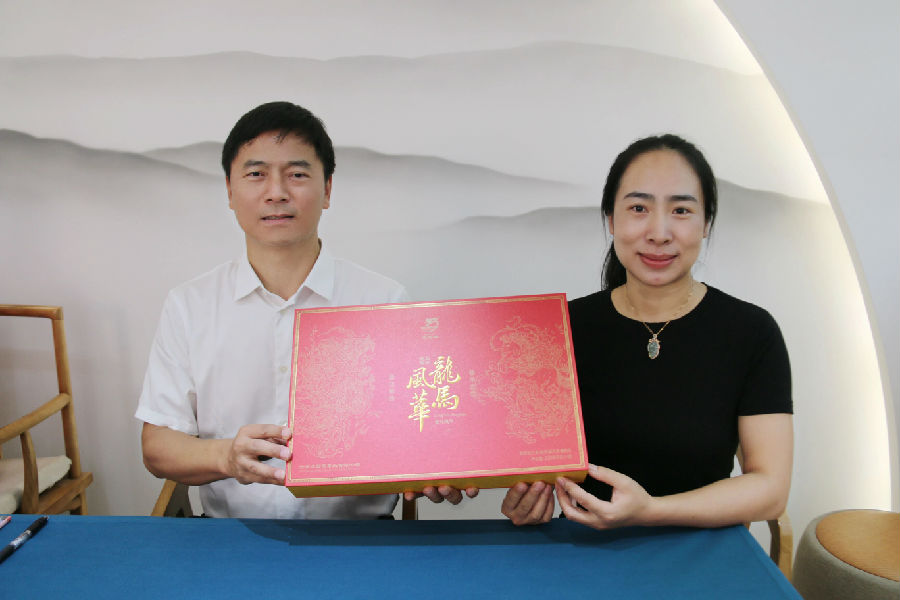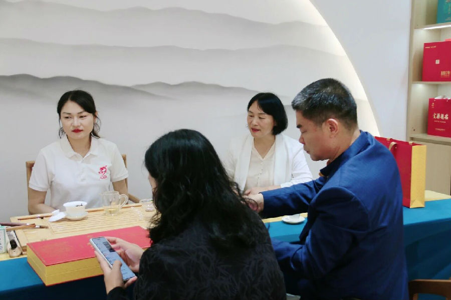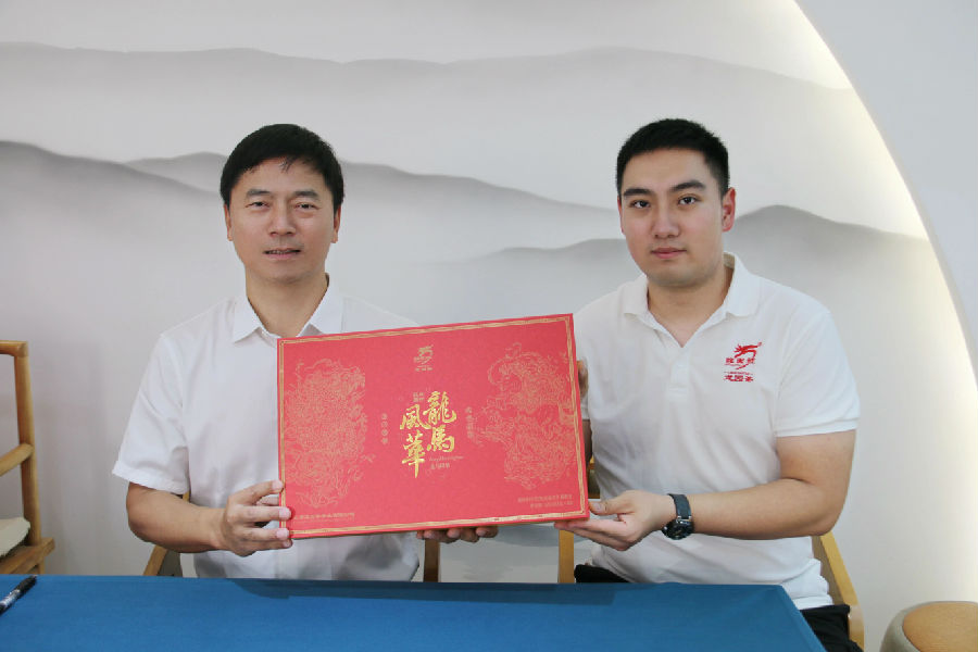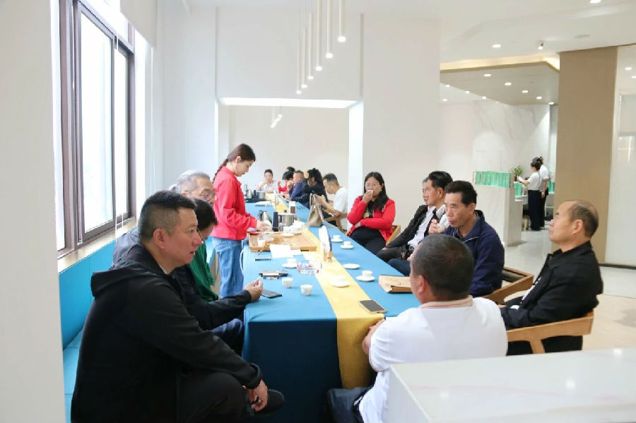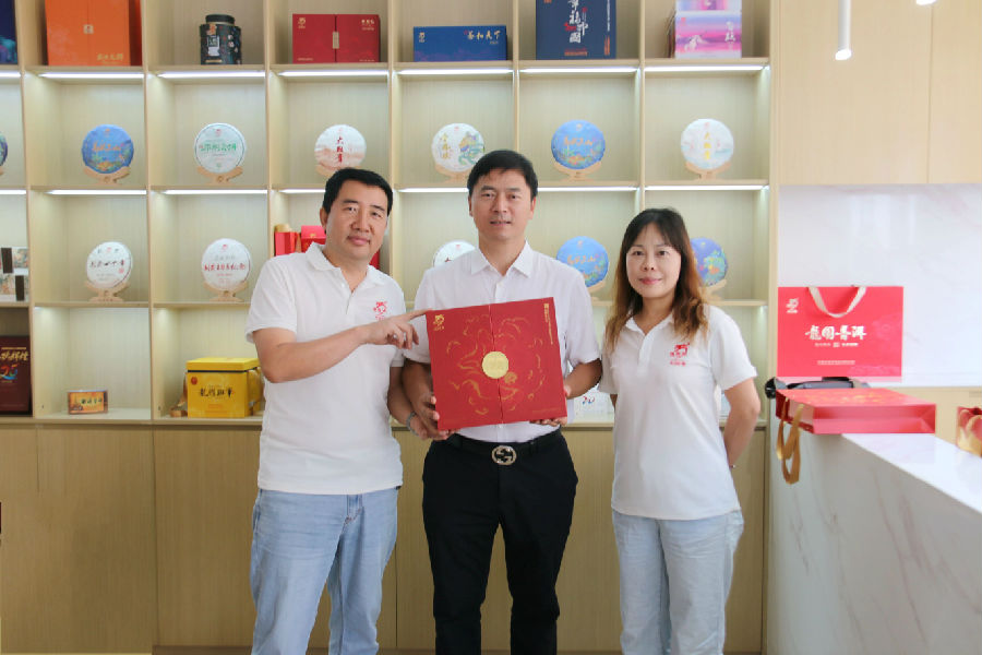 下午品鉴会上,2025年龙园号中秋礼茶“龙马风华”(生、熟普洱茶)和“父子山河”普洱生茶,受到大家的喜爱和青睐!
